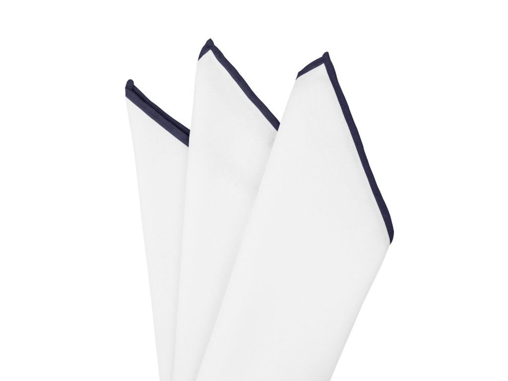 Bílý kapesníček do saka s tmavomodrým lemem od české značky Bubibubi.