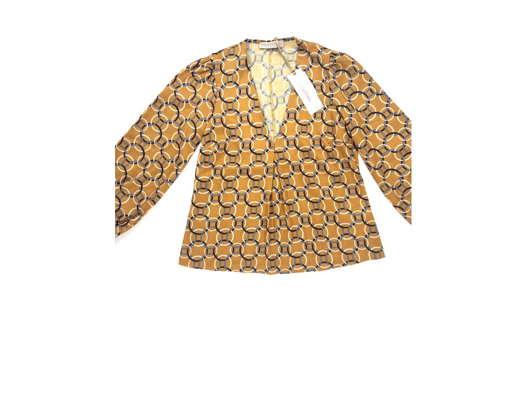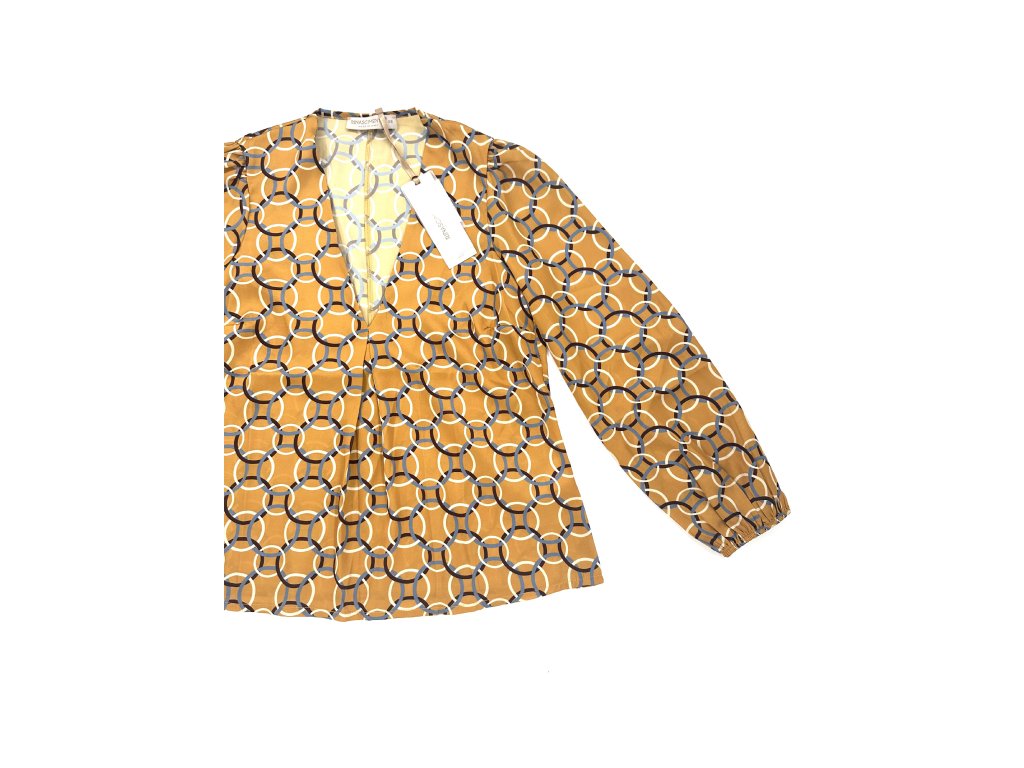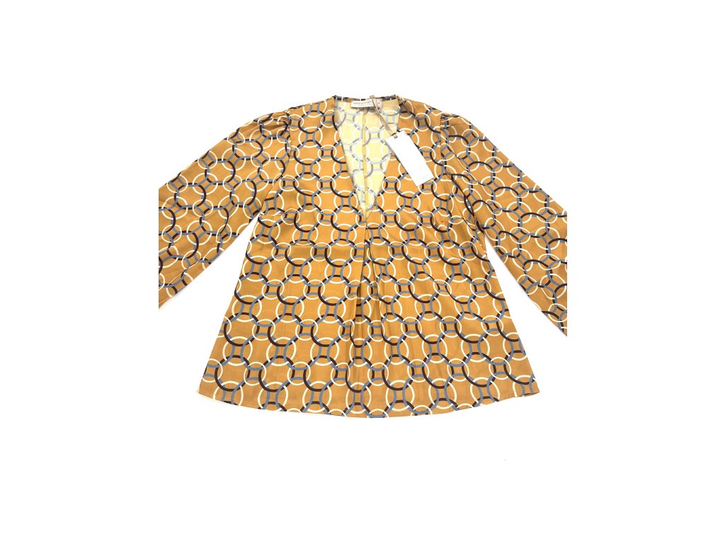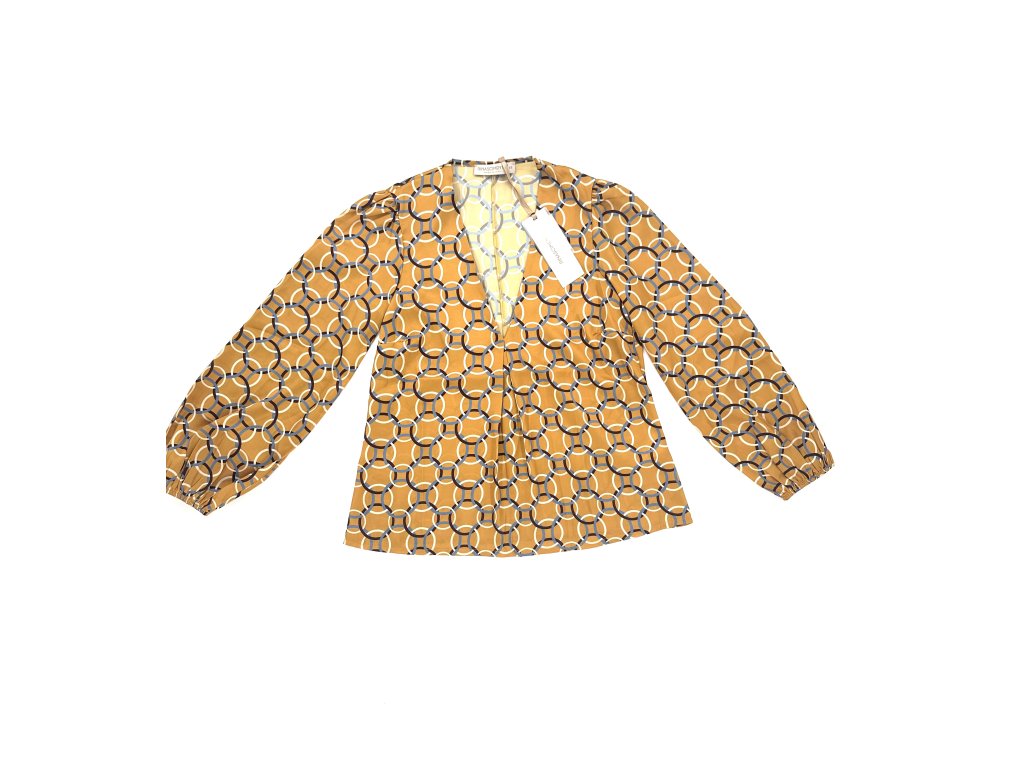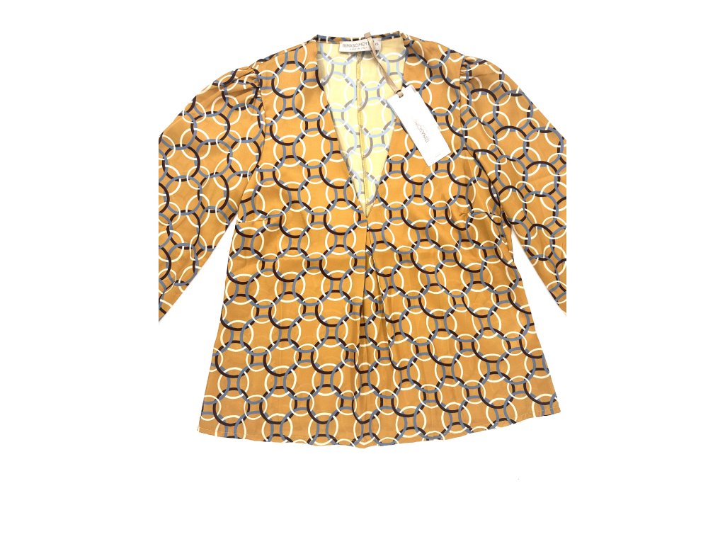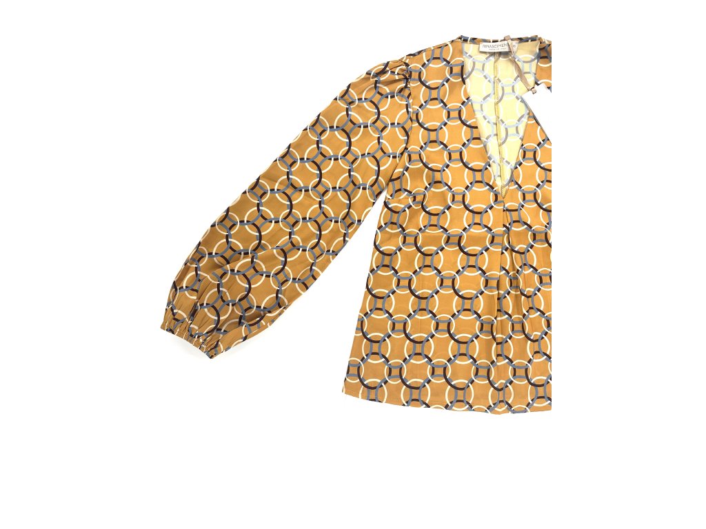 Květinový top bez rukávů s límečkem od značky Rinnascimento zabudovaná guma na stranách v pase pro podtržení postavy