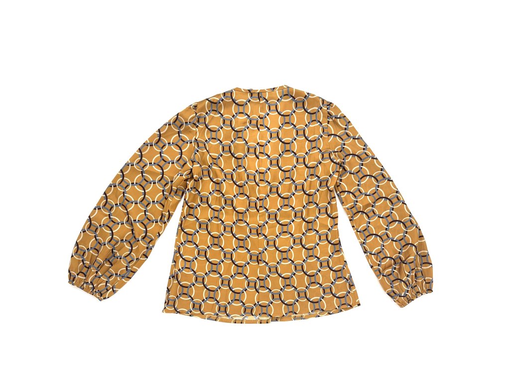 Tričko rovného střihu s krátkými rukávy. Kulatý výstřih s prostřihem na straně u výstřihu a na druhé straně s nápisem looga.
