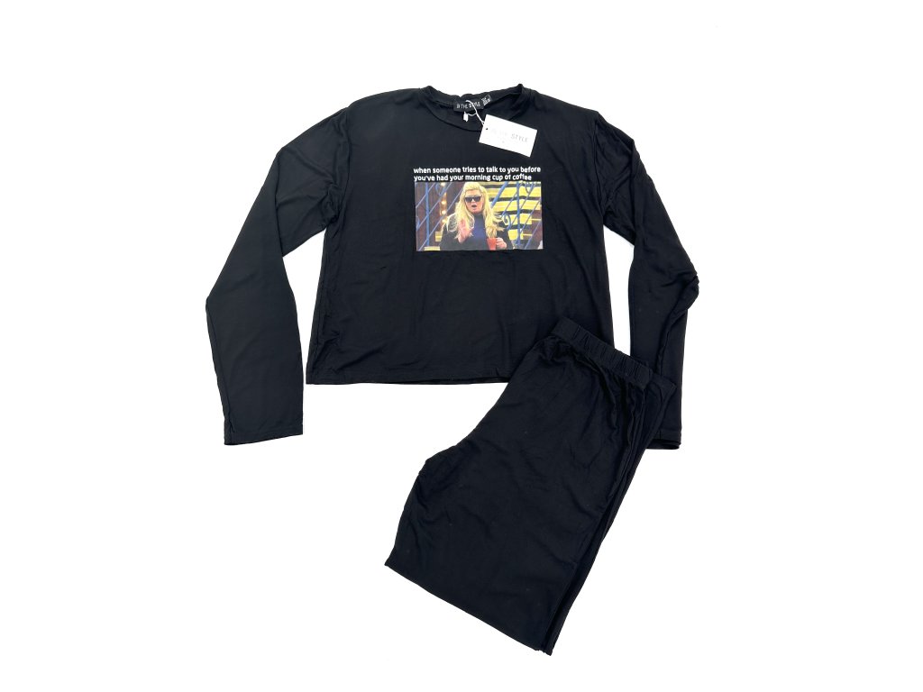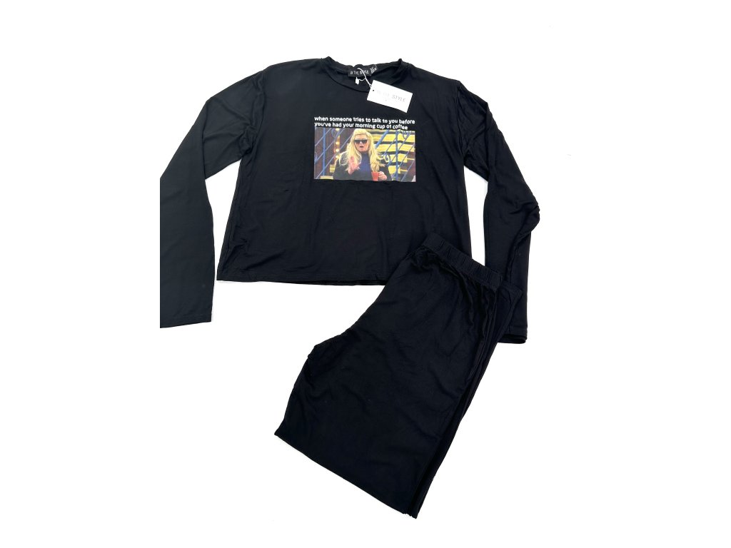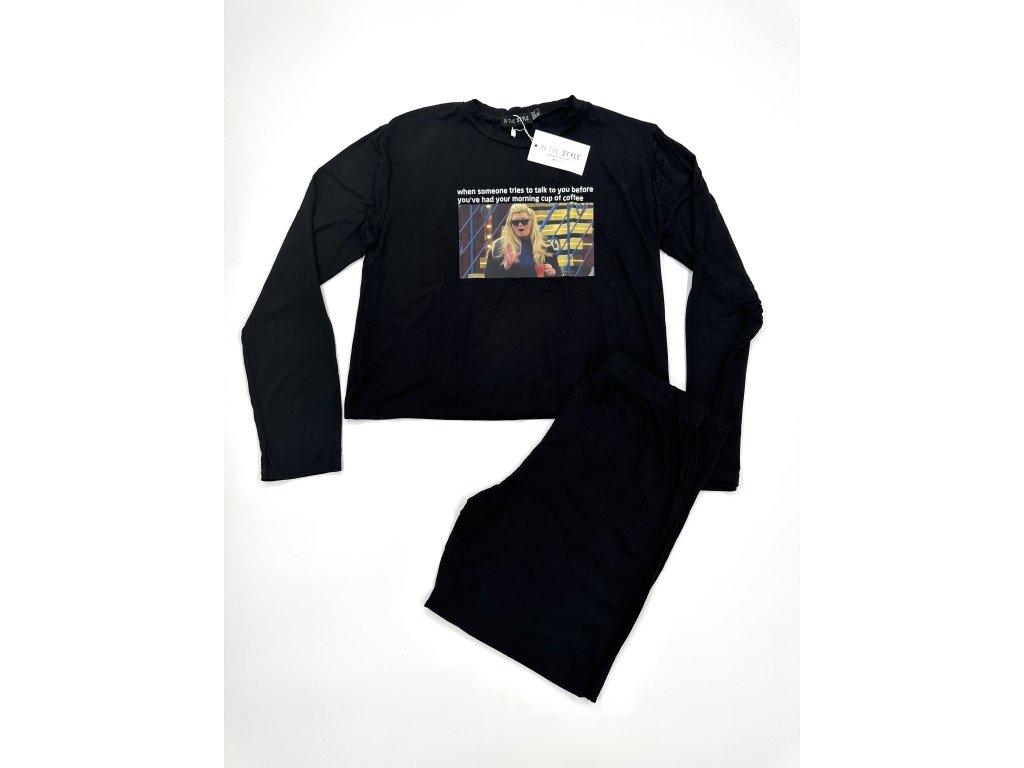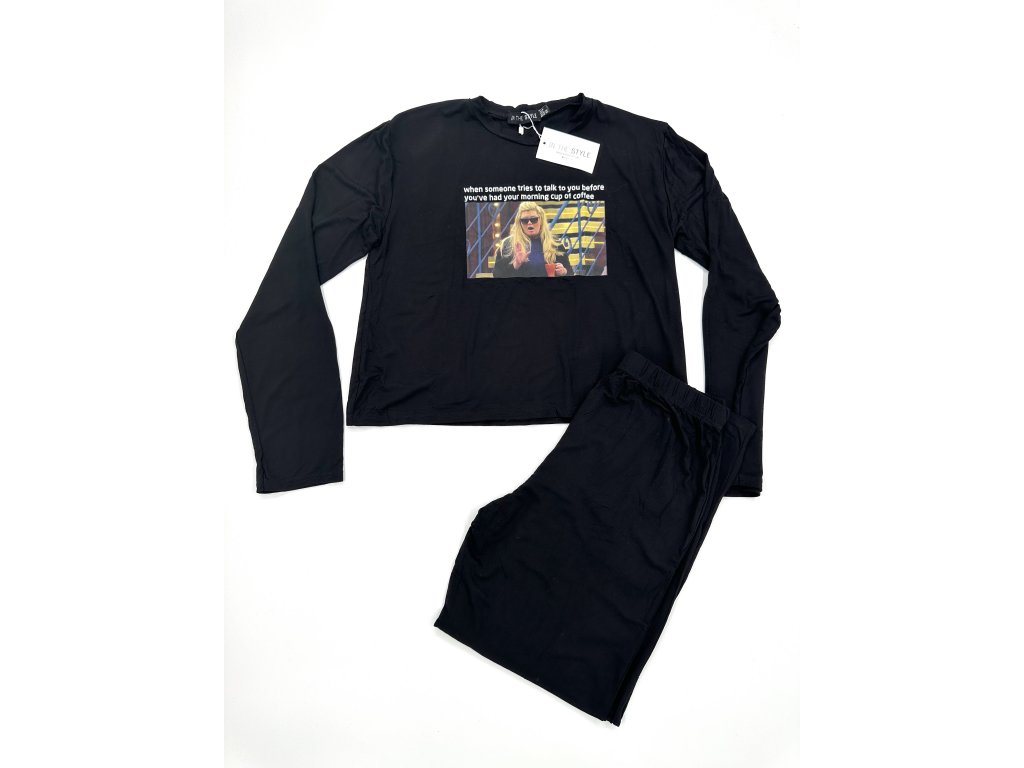 černé pyžamo s dlouhým rukávem s meme