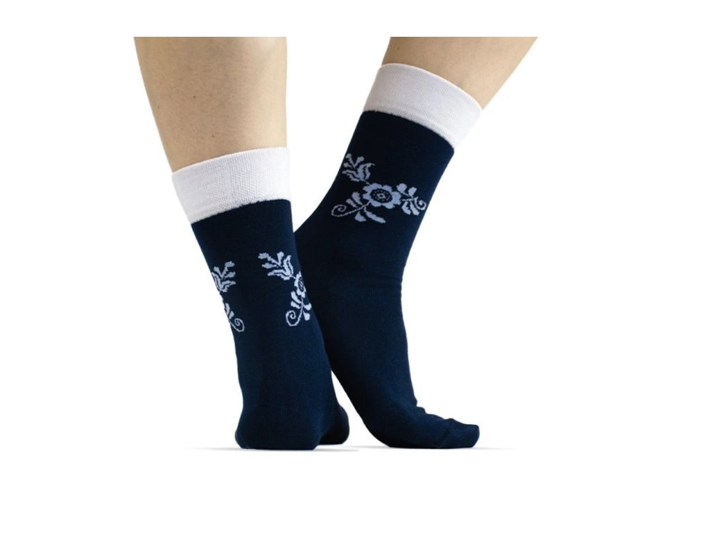 Set 4 párů folklórních ponožek inspirovaných modrotiskem (Čagan, velehrad, Chalúpka, Velička) vyrobené v Srdci Slovácka.
