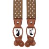 Hnědé kšandy s bílými puntíky a hnědými poutky od české značky Bubibubi