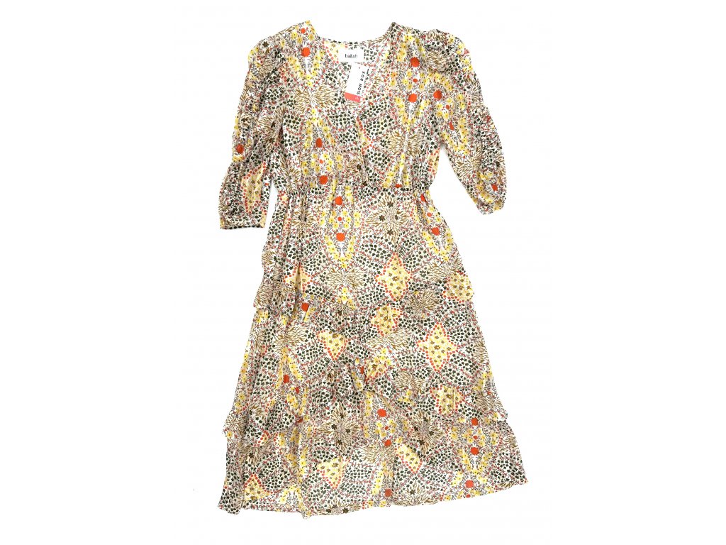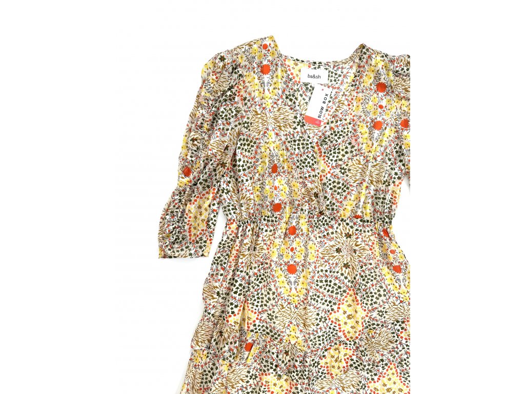 Luxusní krásné šaty v jarních barchách s dlouhým rukávem od značky Ba&sh