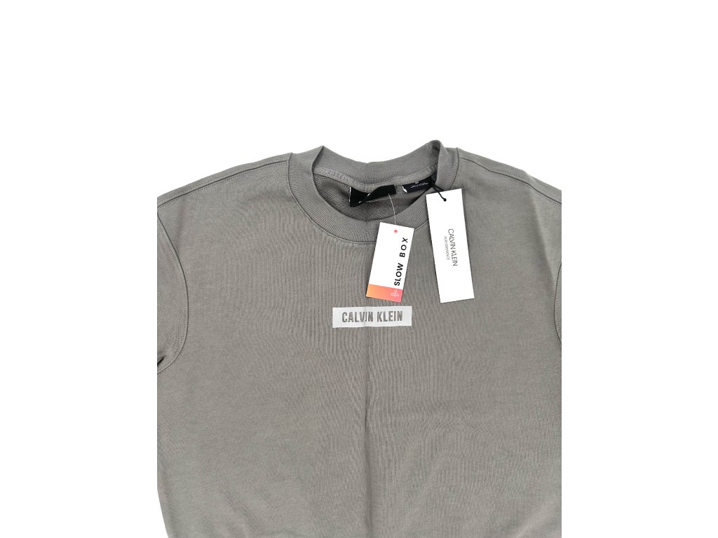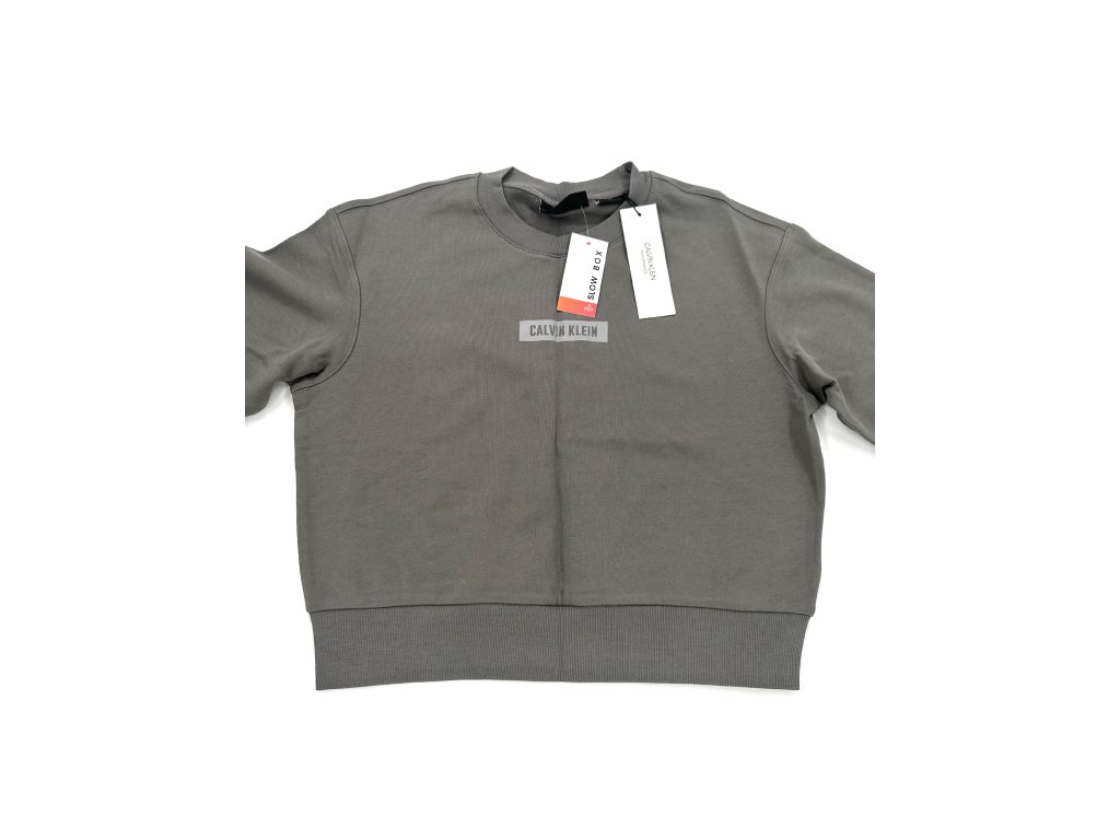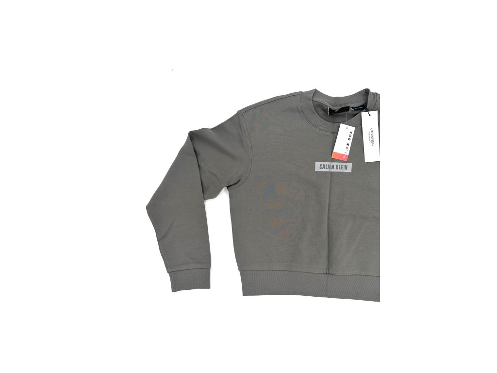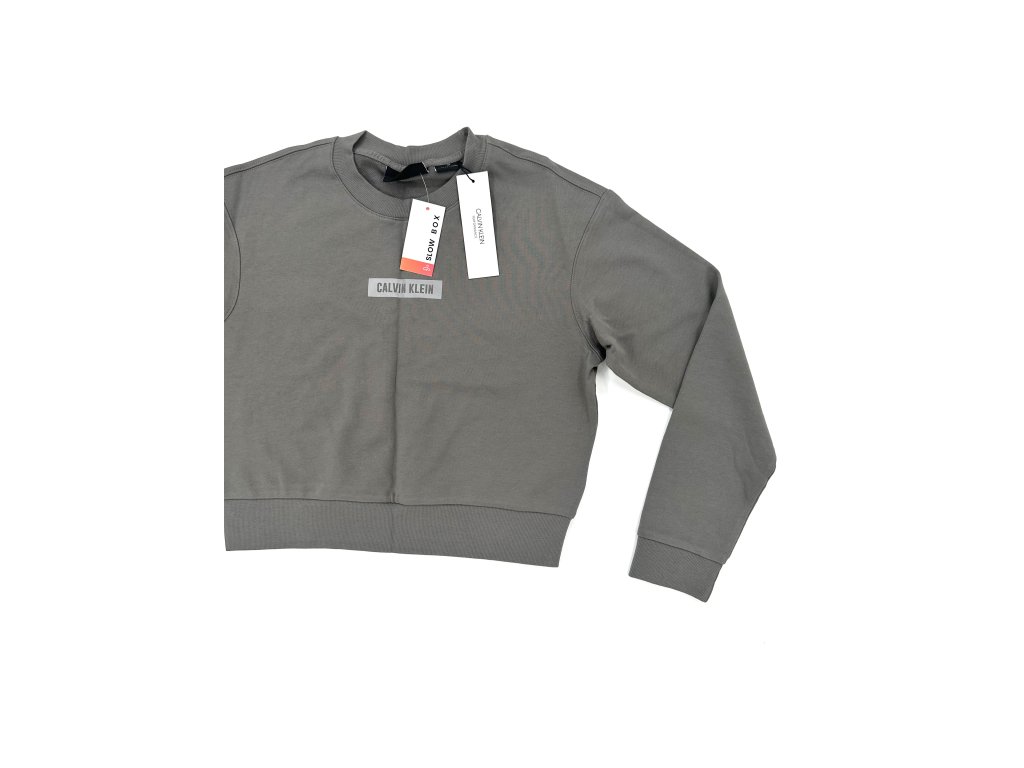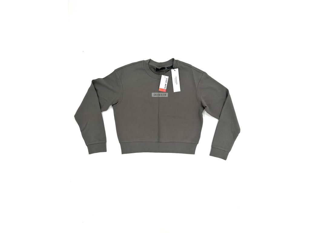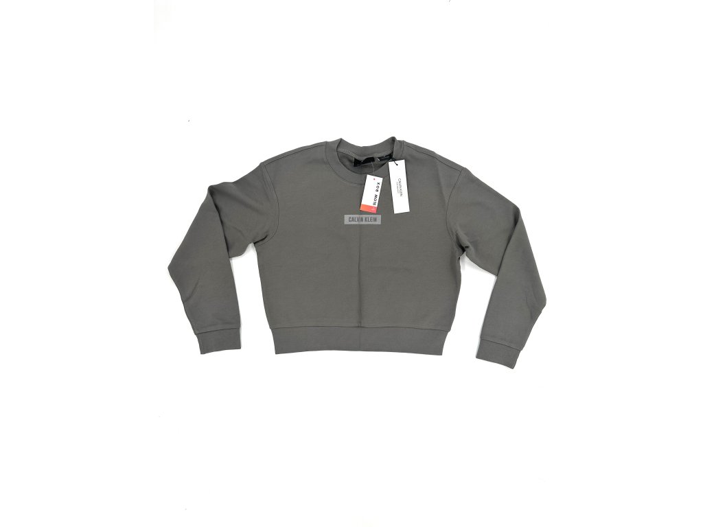 Dámská mikina se stříbrným nápisem Calvin Klein na hrudi.