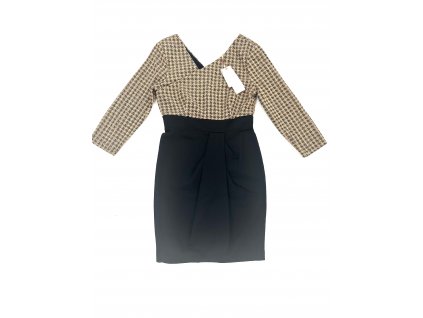 Hnědo zlato černé pouzdrové šaty vhodné do práce jako součást business casual od značky Rinascimento Malý rozparek vzadu