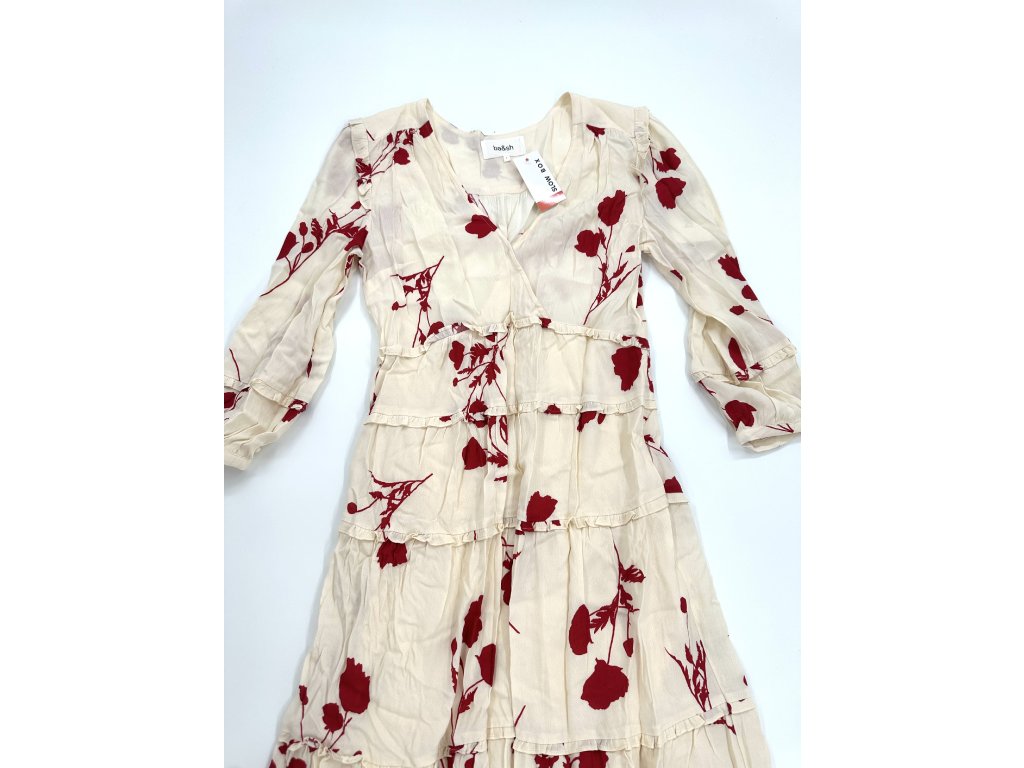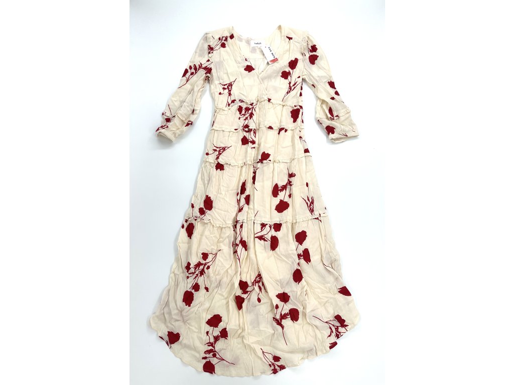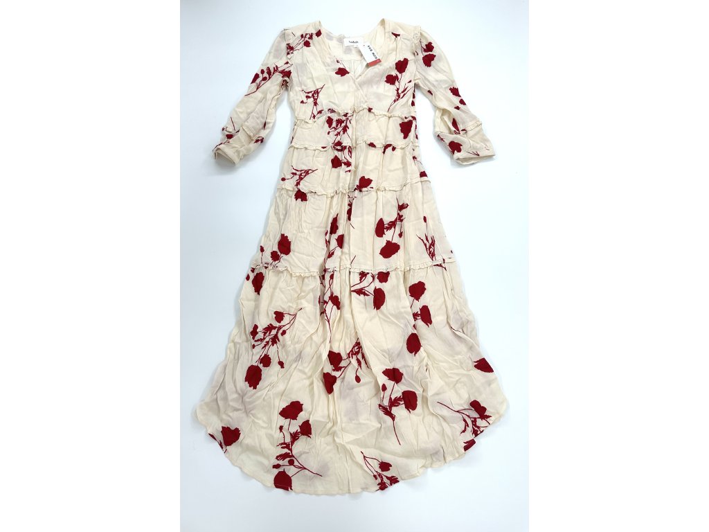 šaty s dlouhým rukávem a květinovým vzorem od značky Rinascimento Výstřih do V, guma v pase, ozdobný pásek v textilu šatů