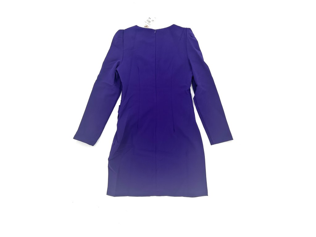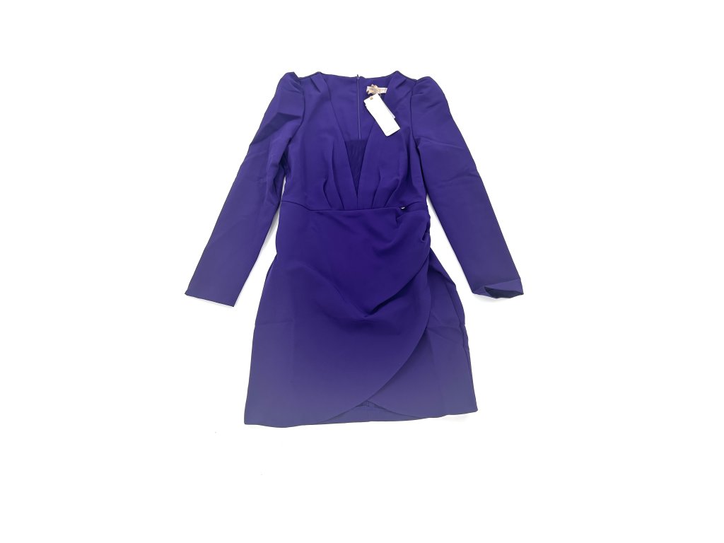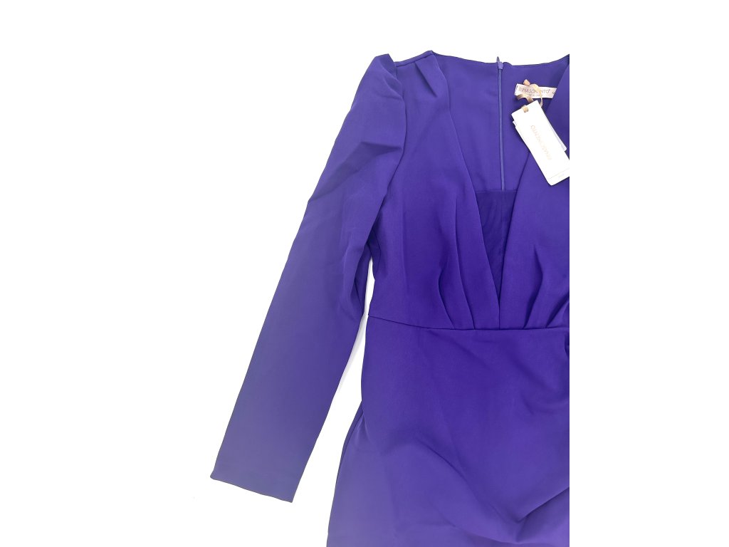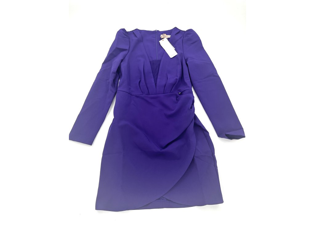 Krásné fialové šaty s nabíranými rameny a rafinovaným výstřihem, který má ve své spodní části průhlednou síťku