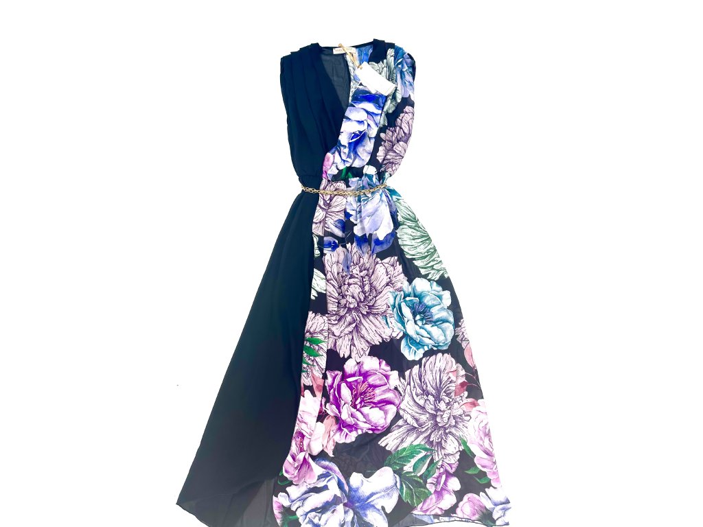 Krásné šaty s květinovým motivem od značky Rinascimento Vhodné na zvláštní příležitosti jako společenské šaty
