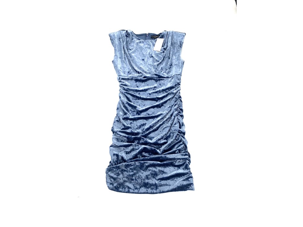 Modré šaty s mašlí ve výstřiihu od značky Rinascimento Délka nad kolena