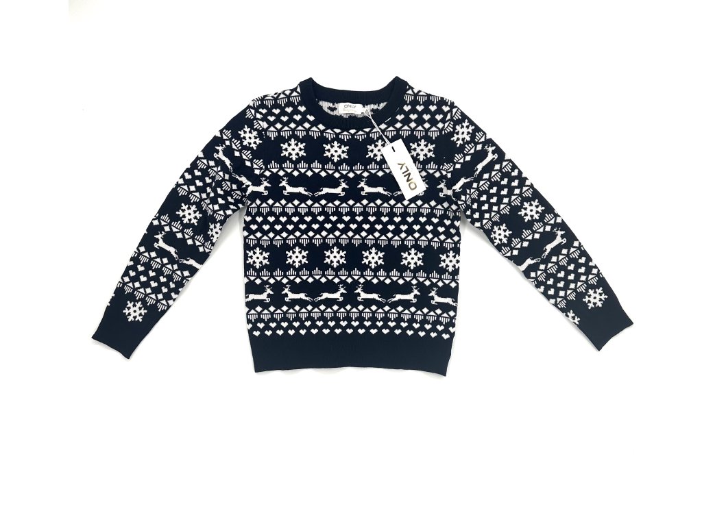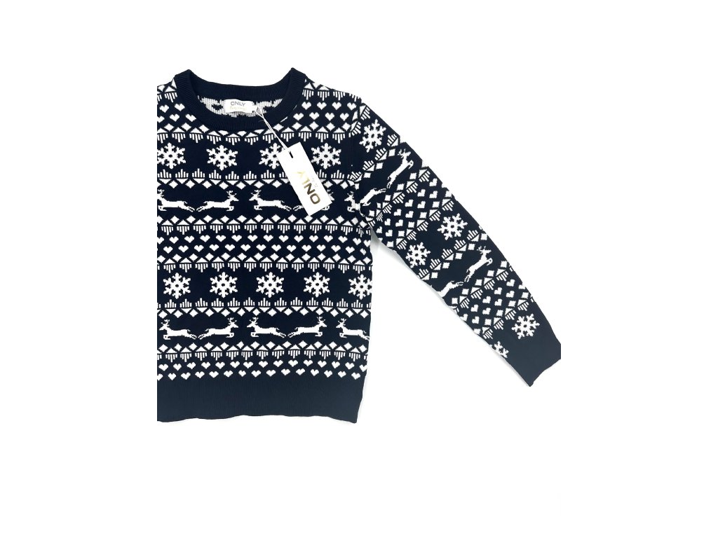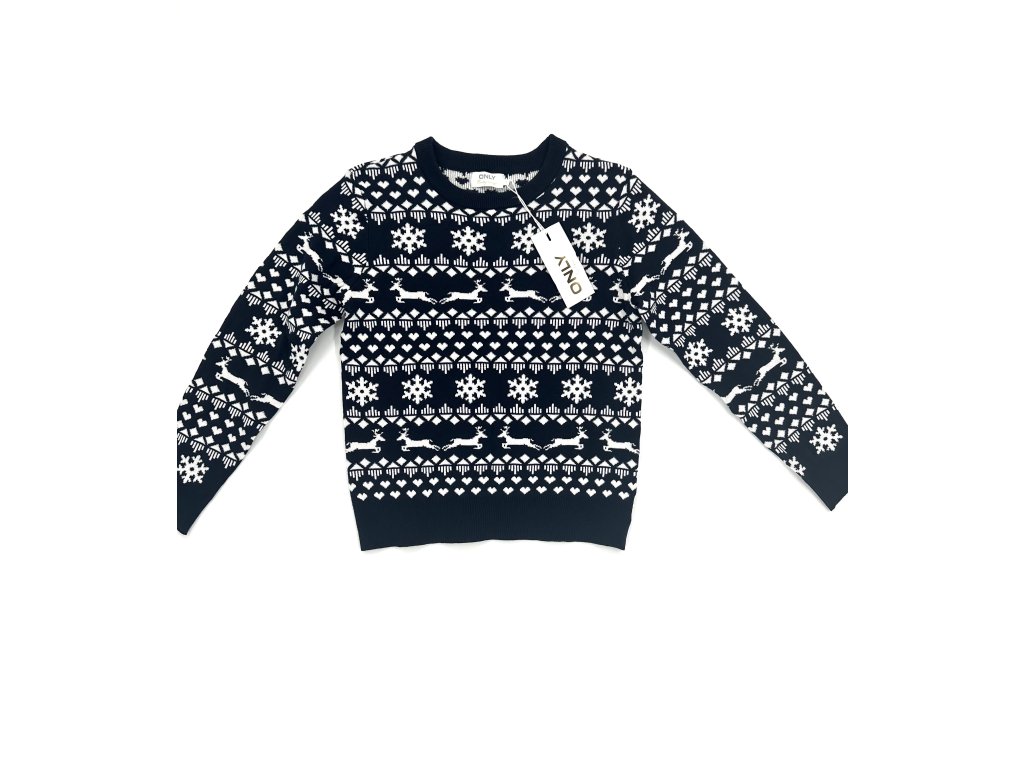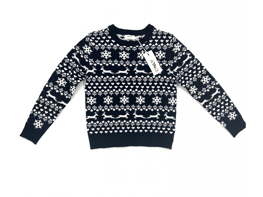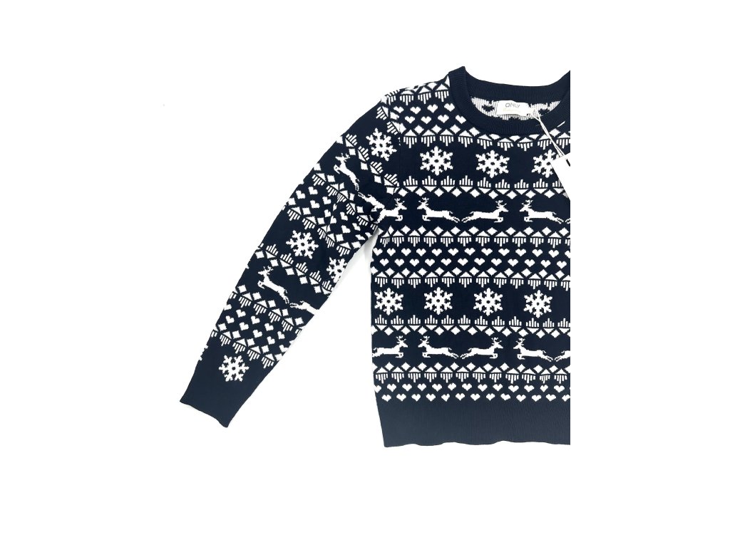 tmavě modrý svetr se zimními/vánočními motivy od značky ONLY