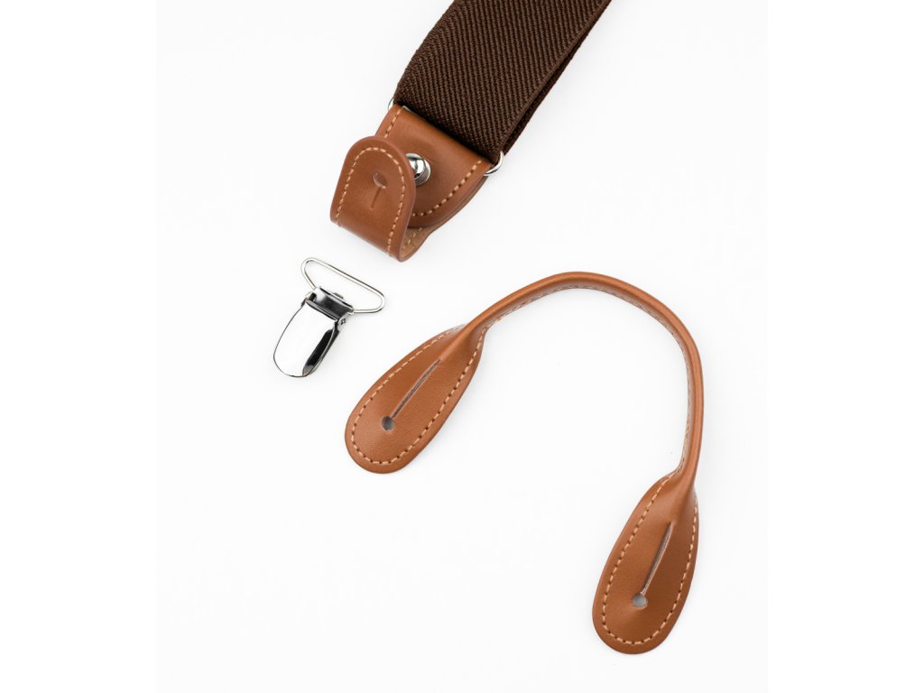 Tmavohnědé kšandy s hnědými poutky od české značky Bubibubi