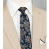 Tmavoodrá kravata s kašmírovým vzorem Morgan od české značky Bubibubi.