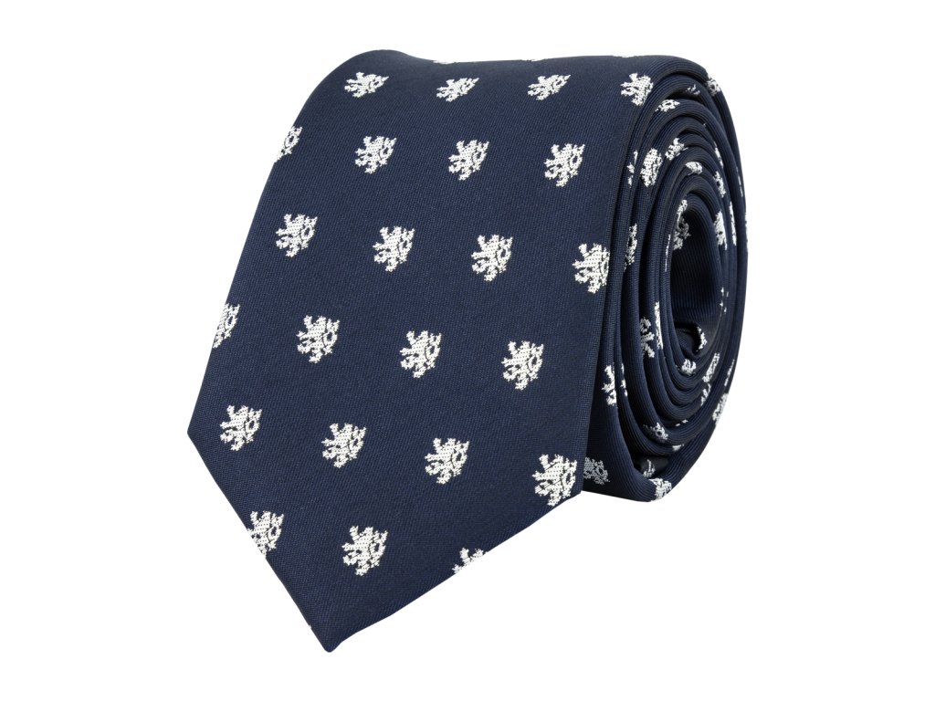 Tmavomodrá kravata se vzory českého lva od české značky Bubibubi