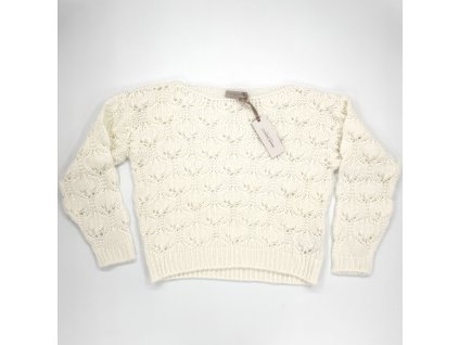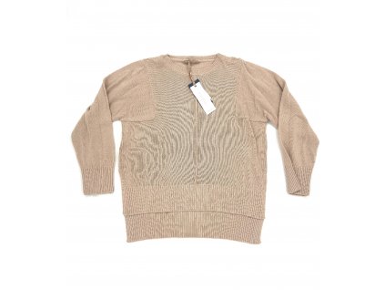 Pullover s dlouhým rukávem v béžové barvě od značky Rinascimento zadní strana je delší než přední